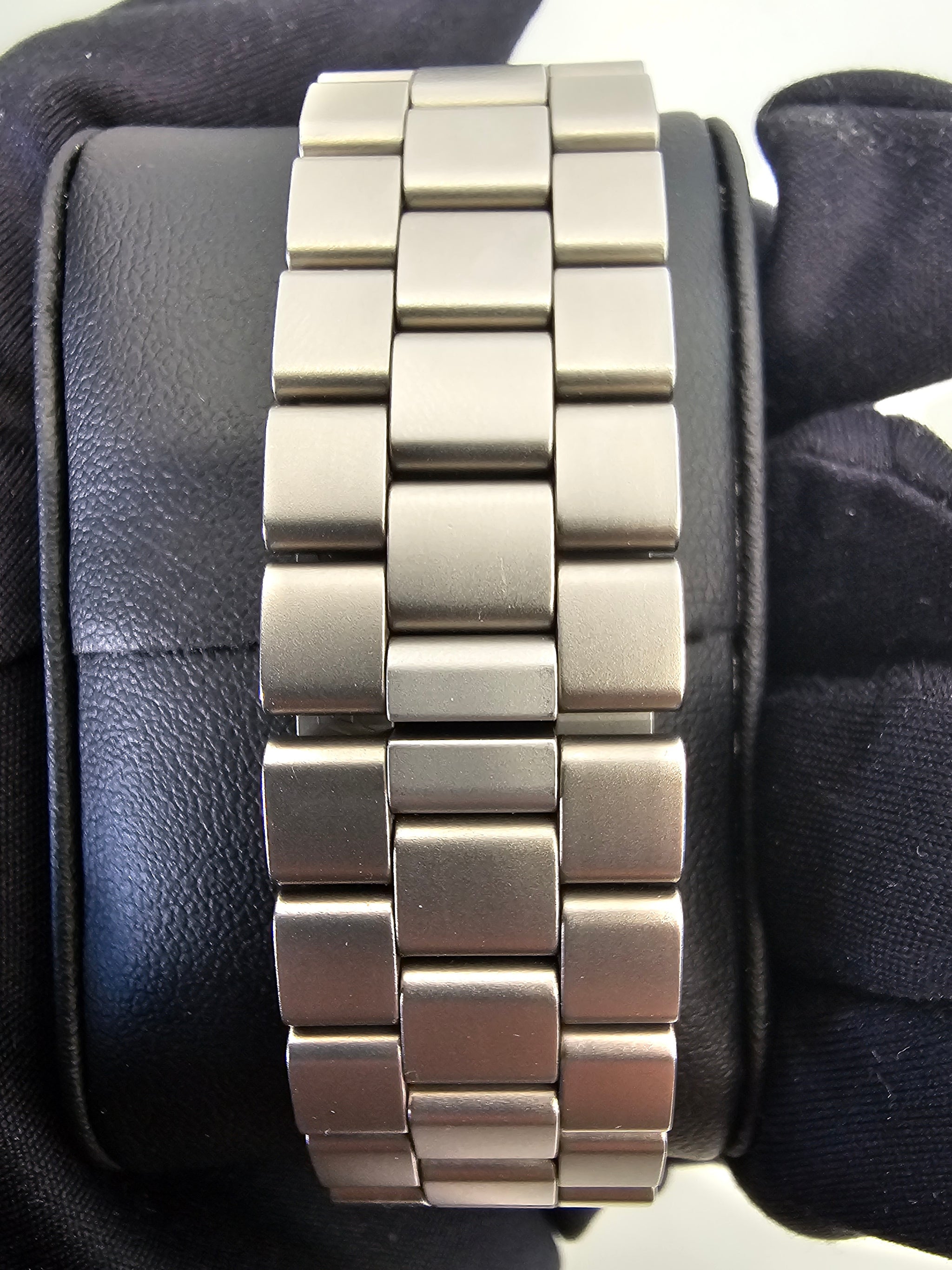 Understatement can be so versatile! With a diameter of 39 millimetres and a height of just 9.9 millimetres, the DS 3X series, with its unobtrusive elegance, looks just as good on both a lady’s wrist and a gentleman’s wrist. The playful contrast between the black face and the indexes overlaid with white special colour gives the impression of being a permanent classic. However, combined with the large selection of coloured leather bands, the DS3X just as quickly become a courageous fashion statement. Speaking of permanent – the lionheart of the DS3X series lies in its exceptional material: The bead-blasted case made of submarine steel is not only characterised by exceptional solidity, but is also of the highest non-magnetic quality and corrosion-resistance.